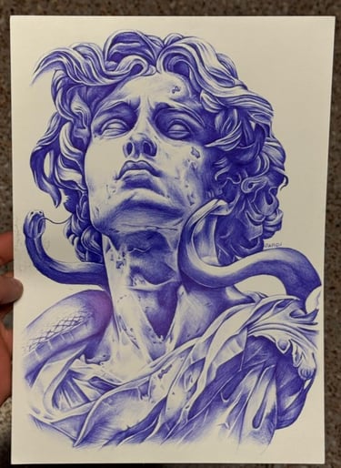 Técnica: Dibujo a bolígrafo Bic azul